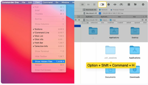 Commander One을 사용하여 숨겨진 파일을 표시하려면 다음 절차를 따르십시오.